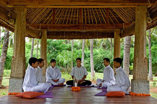 Alternatively, many silence retreats in India offer their guests a variety of wellness activities (meditation and pranayama sessions, rejuvenating massages, cooking sessions, community exercises, natural agriculture), including traditional Indian ashram experience, where sound meditation plays an important role. This form of "Focused Consciousness Meditation" uses Tibetan singing bowls, quartz bowls, and bells to guide the listener and highlights how sound manifests itself not only through hearing, but also by vibrations and tactile physical frequencies.